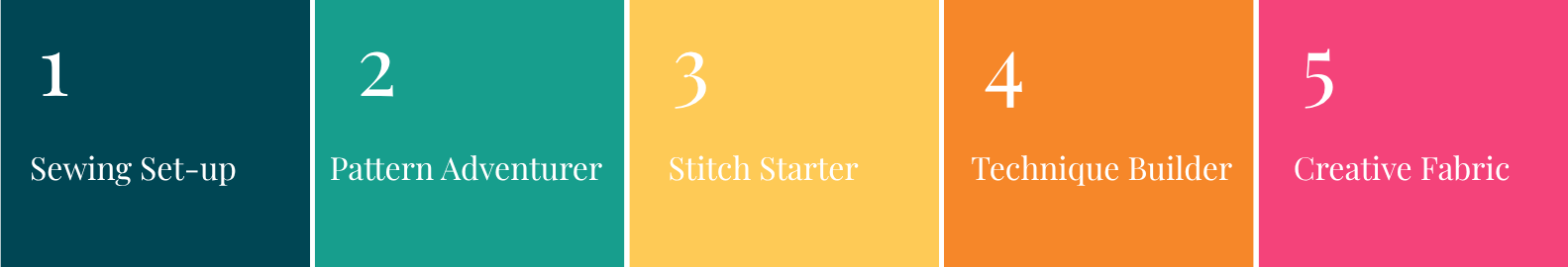The Pathway to Sewing Success is a five-stage framework built on industry-level teaching principles. A clear progression from foundation to creative confidence, with the freedom to dip into any stage whenever it is relevant to you.