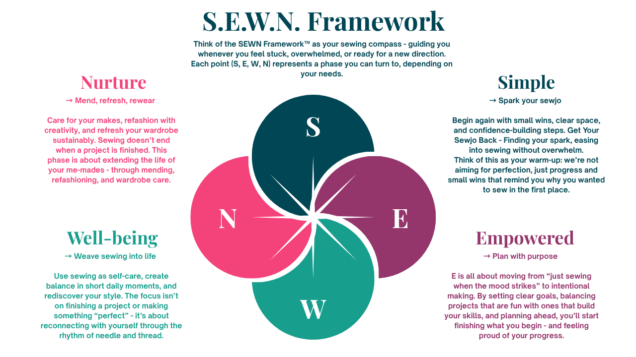 SEWsimple™ is designed for real life — structured enough to guide you, flexible enough to fit into the pockets of time you actually have.