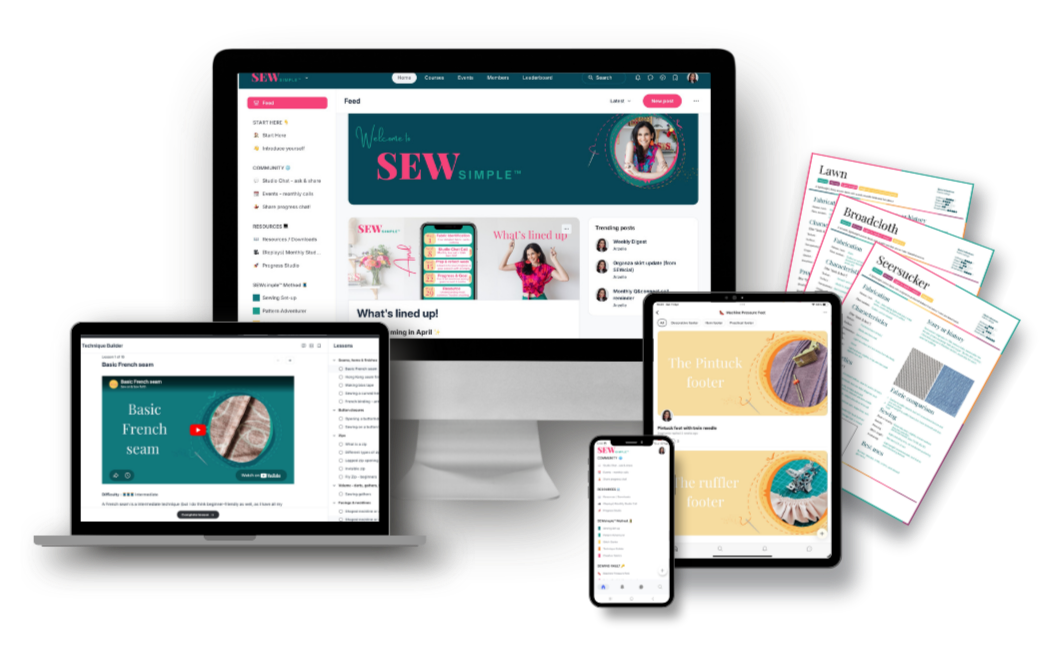 SEWsimple™ is hosted on Circle, a dedicated community and membership platform. You can access it on desktop or mobile through your browser or the Circle app. Everything — the pathway, the calls, the community, and the vault — is in one place and easy to navigate from day one.